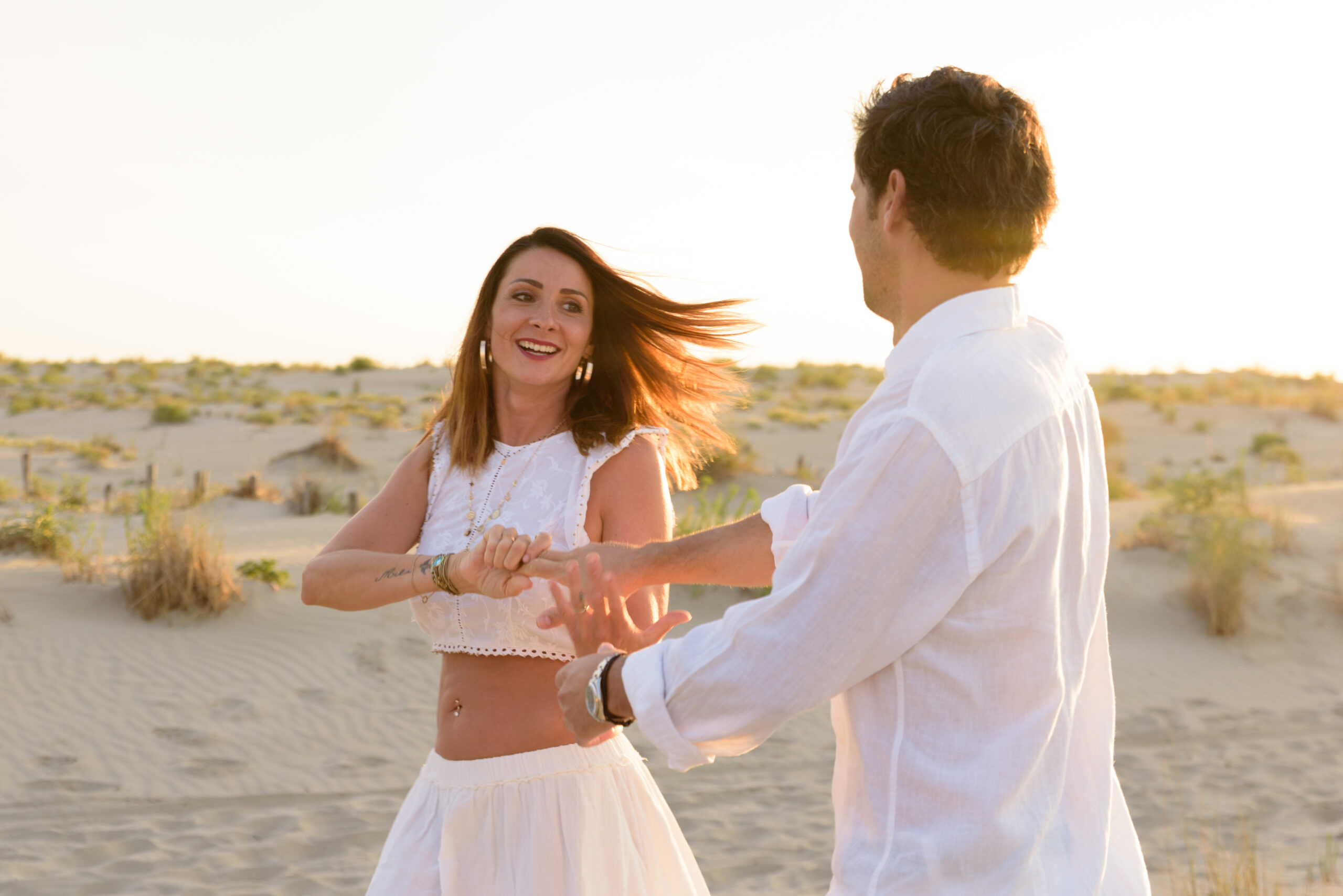 Pendant le cocktail, une séance couple vous permettra de faire une pause à deux, pour des photos pleines de complicité. Et pourquoi pas un mariage aux Saintes Maries de la Mer en pleine Camargue, avec des chevaux si vous aimez la nature?
